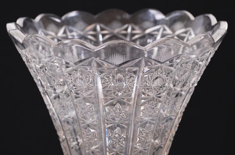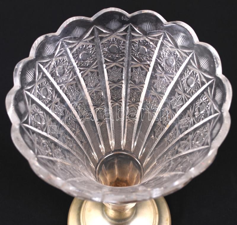 Crystal v... https://www.darabanth.com/de/191-Fernauktion/191.0/Andere-Sammelgebiete/Glaser~600016/Olomkristaly-vaza-fem-talapzaton-szajan-apro-lepattanas--3Cbr3ECrystal-vase-on-metal-stan~II691615