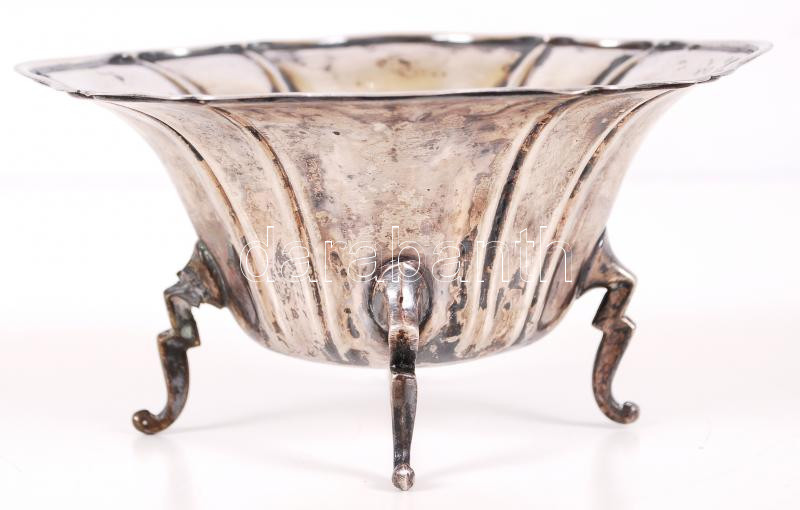 Silver bowl on four legs with 800/1000 fineness Pest "Dianakopf" hallmark (one leg with fault), 15x12x7,5cm, 97gr