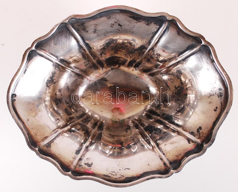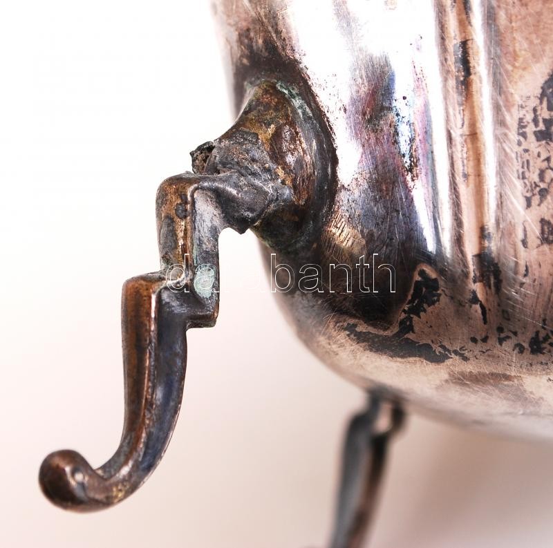 1872-1937 800-as tisztaságú, pesti "dianás" jelzésű, négy lábon álló, ezüst (Ag) kínáló (az egyik láb sérült) /
