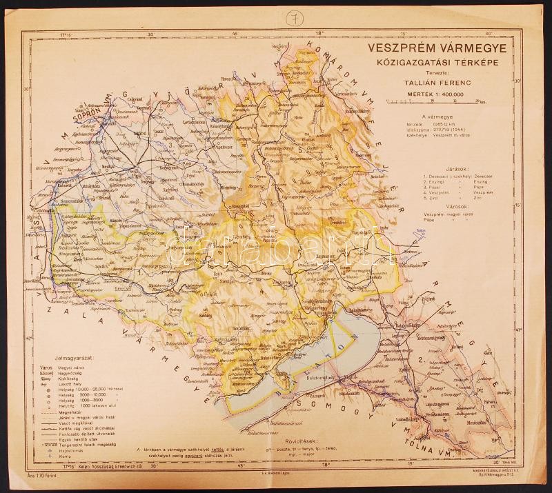 3 db Békés, Csongrád, Veszprém vármegye térképe https://www.darabanth.com/de/191-Fernauktion/191.0/Andere-Sammelgebiete/Landkarten~600006/3-db-Bekes-Csongrad-Veszprem-varmegye-terkepe~II724721