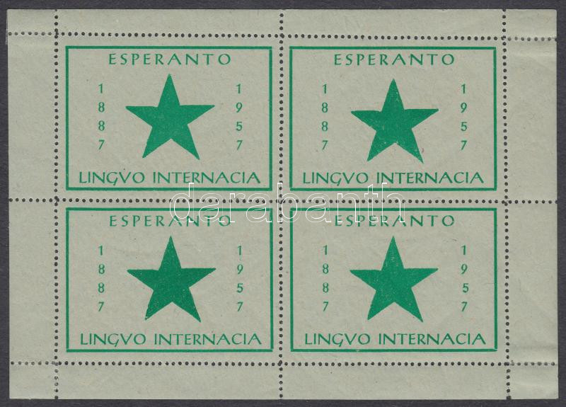 1957 Eszperantó kongresszus kisív, zöld (az ívszéleken bélyegragasztó) https://www.darabanth.com/de/191-Fernauktion/191.0/Andere-Sammelgebiete/Paraphilatelie~600027/1957-Eszperanto-kongresszus-kisiv-zold-az-ivszeleken-belyegragaszto~II724810