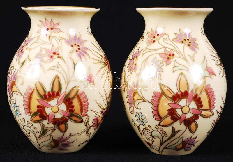 Beschreibung: Zsolnay virág mintás váza pár, kézzel festett, jelzett, apró lepattanás az egyiken, m:13 cm (2×)