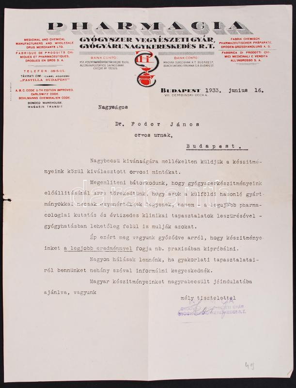 1933 Budapest VII. Pharmacia gyógyszer vegyészeti gyár https://www.darabanth.com/de/191-Fernauktion/191.0/Andere-Sammelgebiete/Werbungen~600036/1933-Budapest-VII-Pharmacia-gyogyszer-vegyeszeti-gyar~II724585