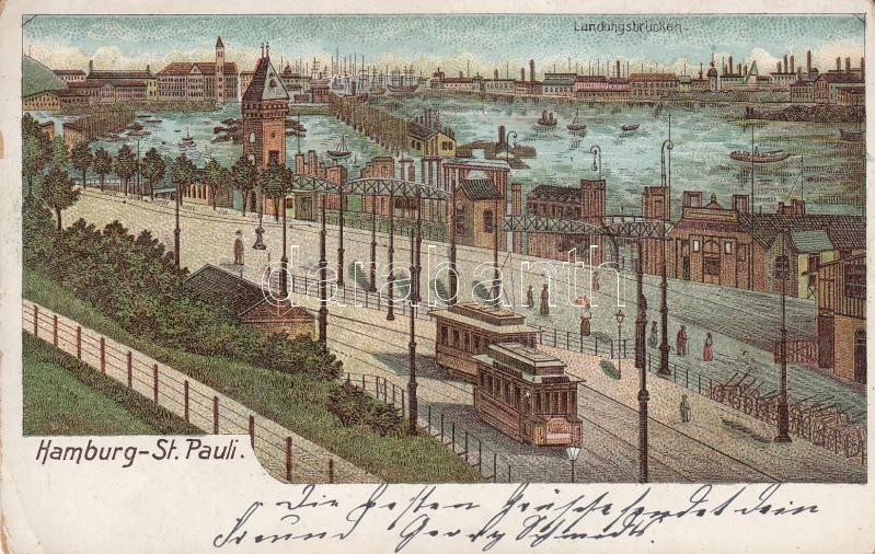 Hamburg, St. Pauli, Landungsbrücken, litho (small tear) https://www.darabanth.com/de/191-Fernauktion/191.0/Ansichtskarten/Deutschland~600088/Hamburg-St-Pauli-Landungsbrucken-litho-small-tear~II718457