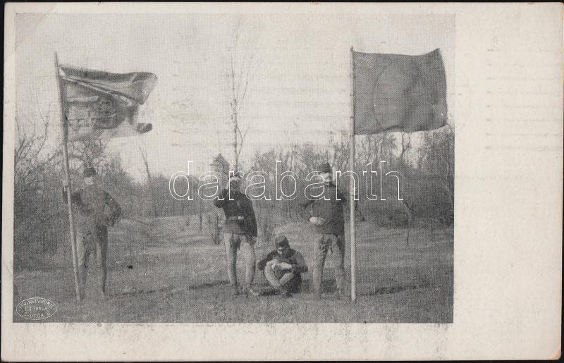 Magyar katonák, photo; Weiner és Grünbaum egyenruha készítők reklámja a hátoldalon / Hungarian soldiers photo; the advertisement of Weiner and Grünbaum uniform tailors on the backside (EB)