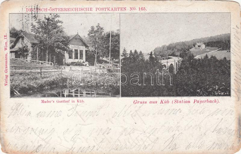 1898 Küb, Mader's inn, Payerbach station (b) https://www.darabanth.com/de/191-Fernauktion/191.0/Ansichtskarten/Osterreich~600044/1898-Kub-Maders-inn-Payerbach-station-b~II720839