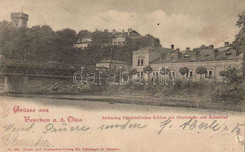 Cieszyn, Teschen; Friedrich's castle, Olsa bridge https://www.darabanth.com/de/191-Fernauktion/191.0/Ansichtskarten/Polen~600074/Cieszyn-Teschen-Friedrichs-castle-Olsa-bridge~II722251