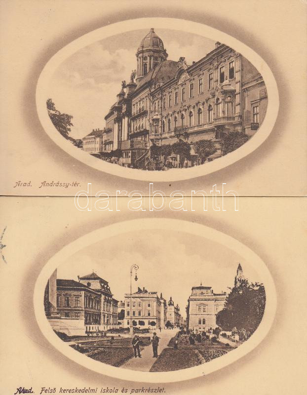 Arad - 2 db városképes lap: Andrássy tér, Felső kereskedelmi iskola és... https://www.darabanth.com/de/191-Fernauktion/191.0/Ansichtskarten/Siebenburgen~400022/Arad--2-db-varoskepes-lap-Andrassy-ter-Felso-kereskedelmi-iskola-es-park-2-Arad-postcards~II721002