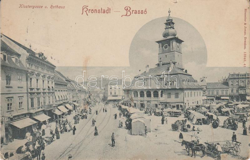 Brassó Kolostor utca, városháza, piac / Monastery street, town hall, m... https://www.darabanth.com/de/191-Fernauktion/191.0/Ansichtskarten/Siebenburgen~400022/Brasso-Kolostor-utca-varoshaza-piac-Monastery-street-town-hall-market-small-tear~II719608
