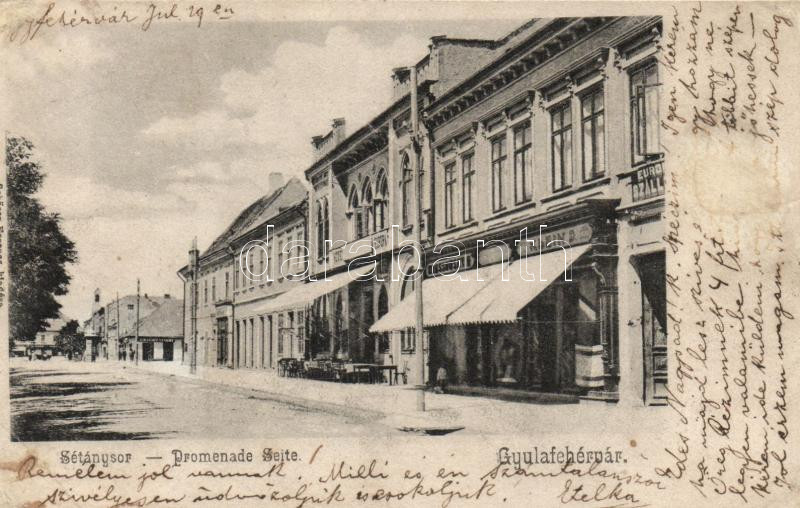 Gyulafehérvár Sétánysor, Klein D. üzlete / promenade, shop (fl) https://www.darabanth.com/de/191-Fernauktion/191.0/Ansichtskarten/Siebenburgen~400022/Gyulafehervar-Setanysor-Klein-D-uzlete-promenade-shop-fl-3Cbr3E-3Cbr3E~II721698