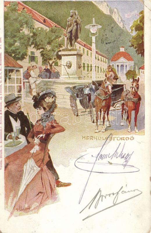 Herkulesfürdő, Schön & Maison, artist signed (b) https://www.darabanth.com/de/191-Fernauktion/191.0/Ansichtskarten/Siebenburgen~400022/Herkulesfurdo-Schon-Maison-artist-signed-b~II723305