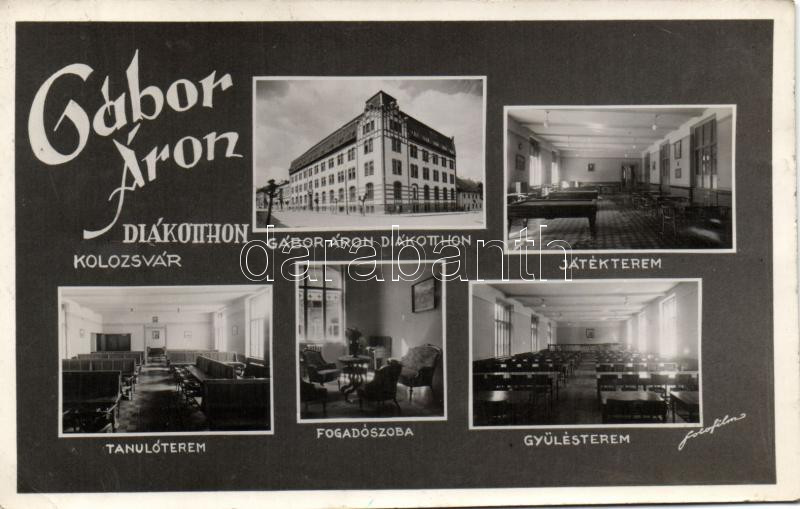 Kolozsvár, Gábor Áron Diákotthon, játékterem, tanulóterem, fogadószoba... https://www.darabanth.com/de/191-Fernauktion/191.0/Ansichtskarten/Siebenburgen~400022/Kolozsvar-Gabor-Aron-Diakotthon-jatekterem-tanuloterem-fogadoszoba-gyulesterem-stud~II722627