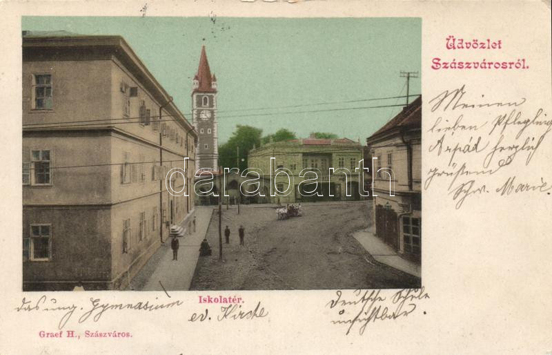 Beschreibung: Szászváros Iskola tér, gyógyszertár / square, pharmacy