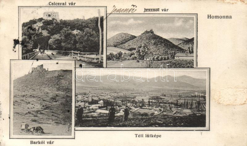 Homonna Barkói vár, Csicsva vára, Jeszenői vár / castles (Rb) https://www.darabanth.com/de/191-Fernauktion/191.0/Ansichtskarten/Slowakei~400023/Homonna-Barkoi-var-Csicsva-vara-Jeszenoi-var-castles-Rb-3Cbr3E-3Cbr3E~II721710