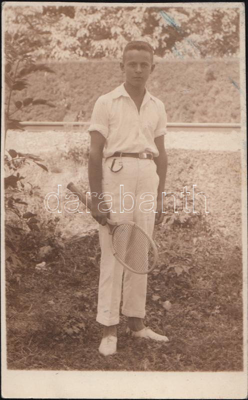 Tennis player boy, photo (fl) https://www.darabanth.com/de/191-Fernauktion/191.0/Ansichtskarten/Sport~600120/Tennis-player-boy-photo-fl~II718743