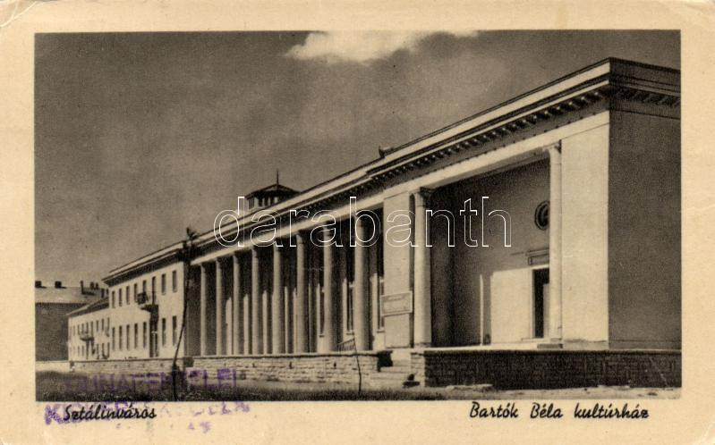 1957 Dunaújváros / Sztálinváros, Bartók Béla kultúrház (EK) https://www.darabanth.com/de/191-Fernauktion/191.0/Ansichtskarten/Ungarn~400021/1957-Dunaujvaros-Sztalinvaros-Bartok-Bela-kulturhaz-EK~II723301