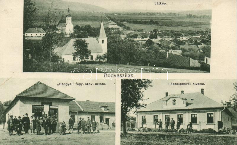 Bódvaszilas, Hangya, Főszolgabírói hivatal, templom https://www.darabanth.com/de/191-Fernauktion/191.0/Ansichtskarten/Ungarn~400021/Bodvaszilas-Hangya-Foszolgabiroi-hivatal-templom~II724396