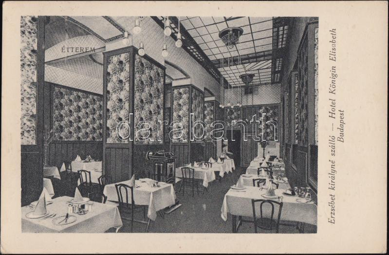 Budapest V. Erzsébet Királyné Szálló étterme https://www.darabanth.com/de/191-Fernauktion/191.0/Ansichtskarten/Ungarn~400021/Budapest-V-Erzsebet-Kiralyne-Szallo-etterme~II718564