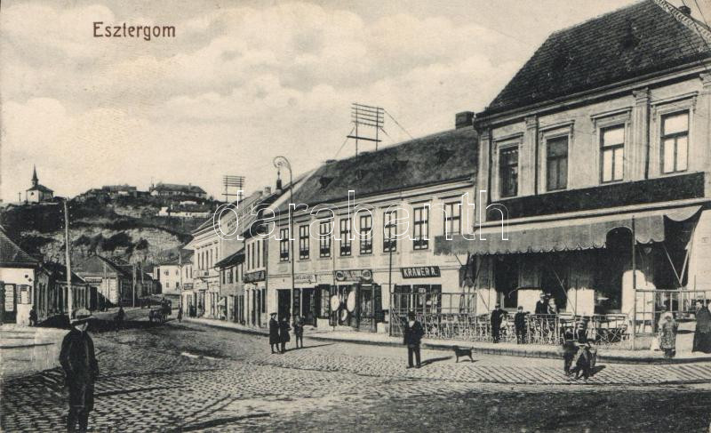 Esztergom, tér, Kramer kereskedése https://www.darabanth.com/de/191-Fernauktion/191.0/Ansichtskarten/Ungarn~400021/Esztergom-ter-Kramer-kereskedese~II720209
