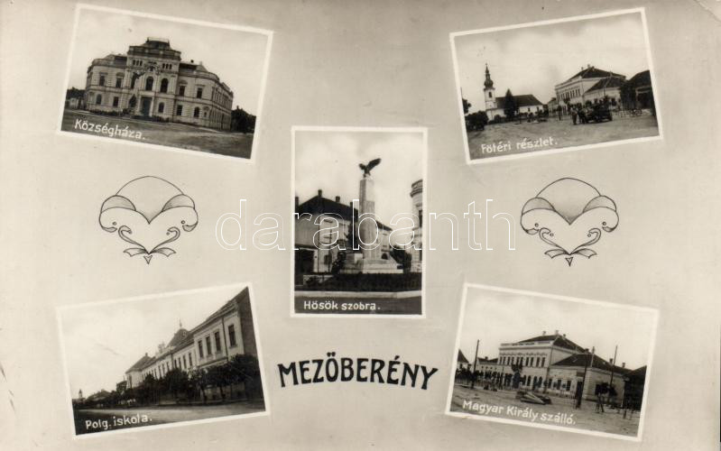 Mezőberény Magyar Király szálló, polgári iskola, községháza, Hősök szo... https://www.darabanth.com/de/191-Fernauktion/191.0/Ansichtskarten/Ungarn~400021/Mezobereny-Magyar-Kiraly-szallo-polgari-iskola-kozseghaza-Hosok-szobra-Fo-ter-raga~II721468