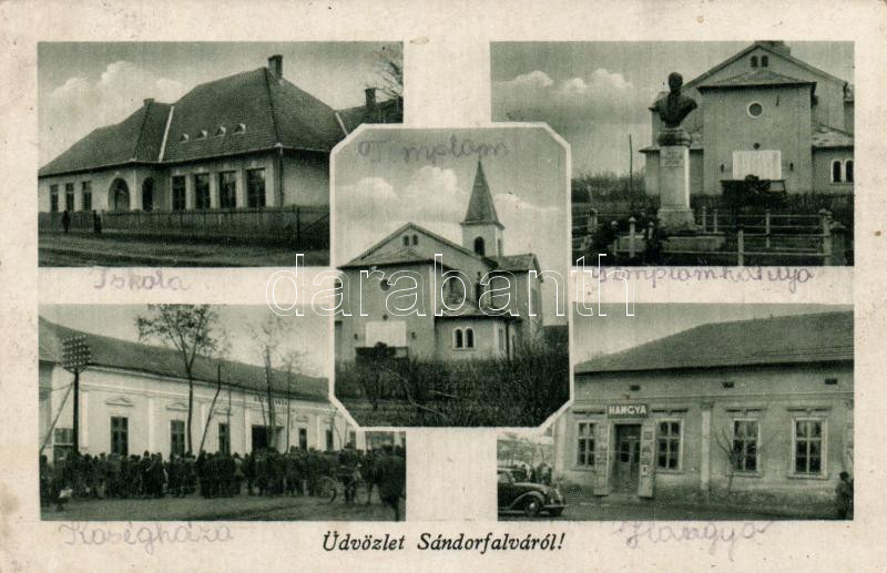 Sándorfalva Hangya, községháza, iskola (ragasztónyom / gluemark) https://www.darabanth.com/de/191-Fernauktion/191.0/Ansichtskarten/Ungarn~400021/Sandorfalva-Hangya-kozseghaza-iskola-ragasztonyom-gluemark~II721501