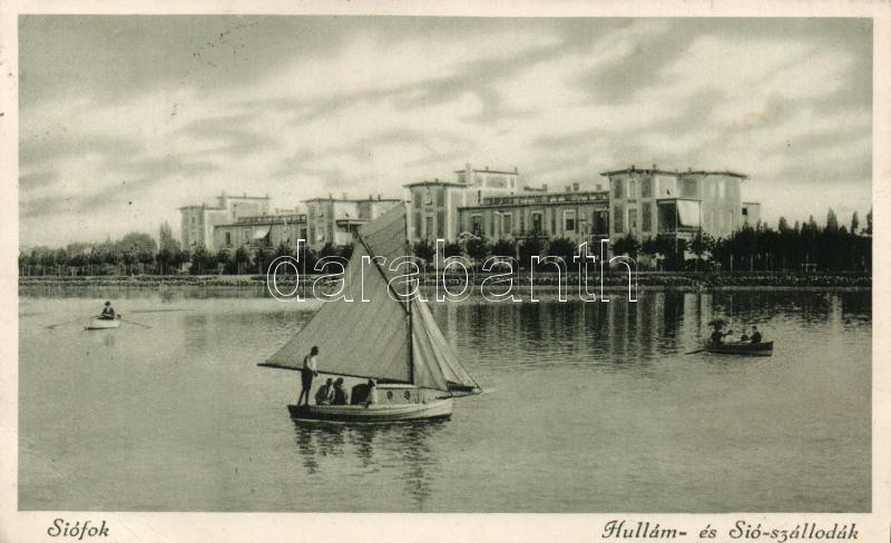 Siófok Hullám és Sió szállodák https://www.darabanth.com/de/191-Fernauktion/191.0/Ansichtskarten/Ungarn~400021/Siofok-Hullam-es-Sio-szallodak~II720004