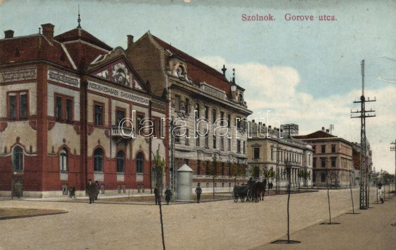 Szolnok, Gorove utca, Mezőgazdasági Takarékpénztár (fa) https://www.darabanth.com/de/191-Fernauktion/191.0/Ansichtskarten/Ungarn~400021/Szolnok-Gorove-utca-Mezogazdasagi-Takarekpenztar-fa~II721236