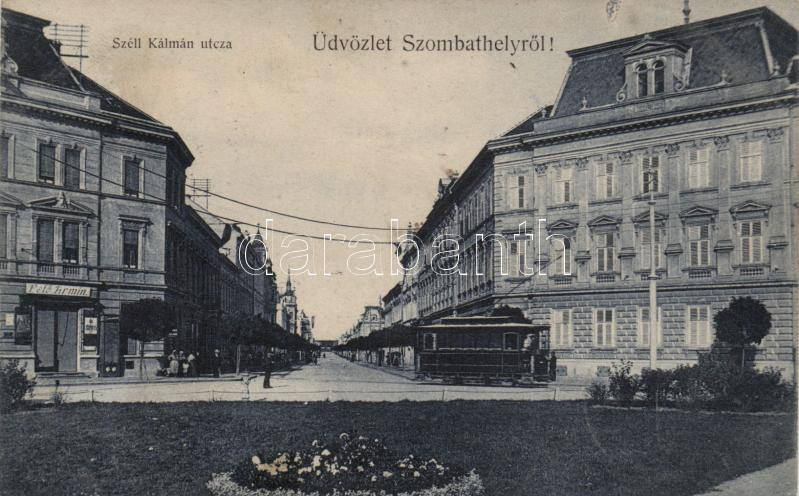 Szombathely Széll Kálmán utca, Pető Ármin üzlete, villamos (fl) https://www.darabanth.com/de/191-Fernauktion/191.0/Ansichtskarten/Ungarn~400021/Szombathely-Szell-Kalman-utca-Peto-Armin-uzlete-villamos-fl~II718074