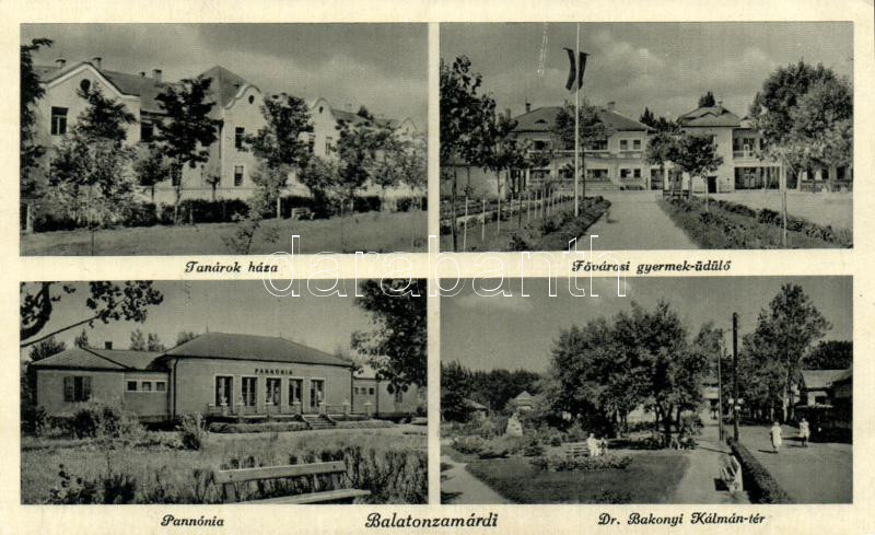 Beschreibung: Zamárdi Tanárok háza, Fővárosi gyermeküdülő, Pannónia, Dr. Bakonyi Kálmán tér