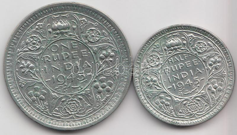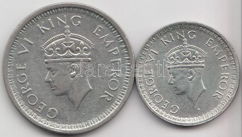 Britt India 1945. 1/2R Ag + 1R Ag "VI. György" T:2-