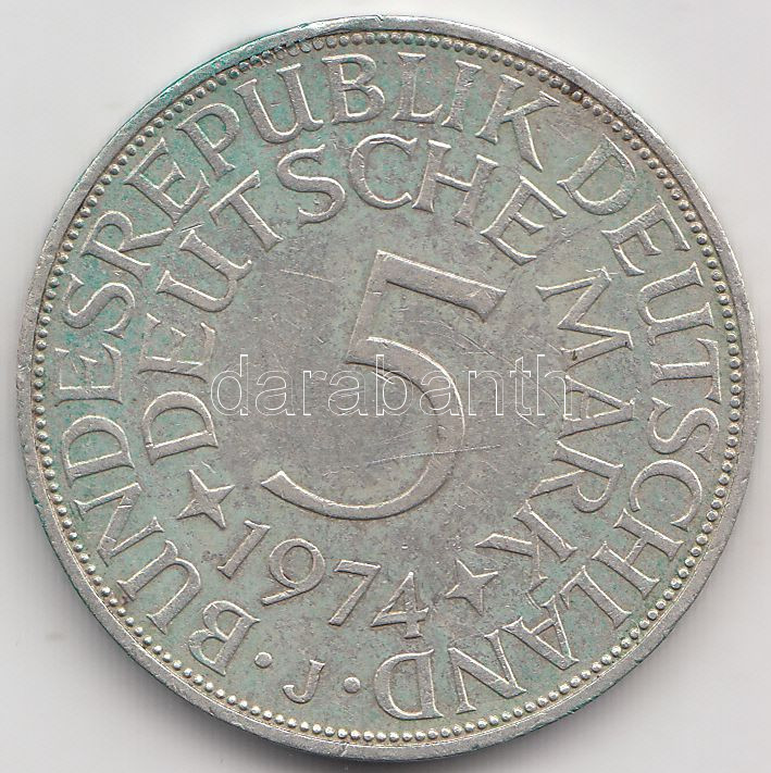 GFR 1974J 5 Mark Ag C:VF https://www.darabanth.com/de/191-Fernauktion/191.0/Numismatik/Auslandische-Munzen~200014/NSZK-1974J-5M-Ag-T2--3Cbr3EGFR-1974J-5-Mark-Ag-CVF~II723594