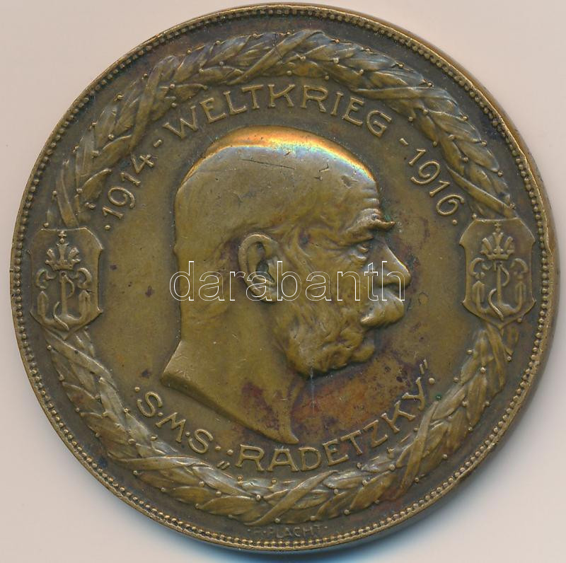 Osztrák-Magyar Monarchia 1916. "SMS RADETZKY" Br emlékérem (50mm) E: Ferenc József portréja; H: Radetzky csatahajó. szignó: R.Placht; J.Prinz T:2