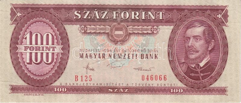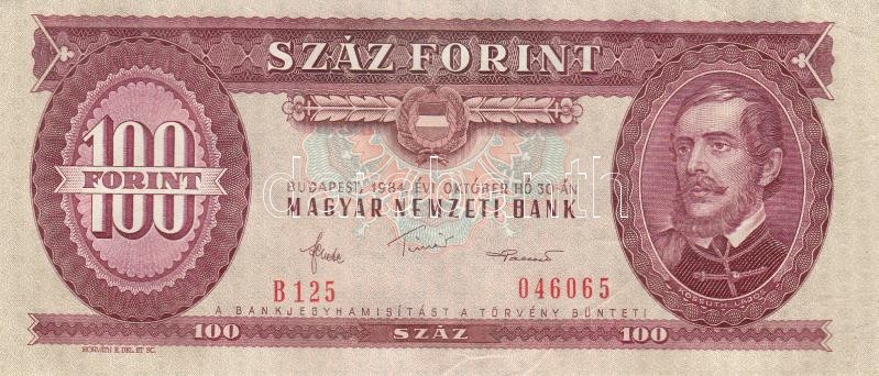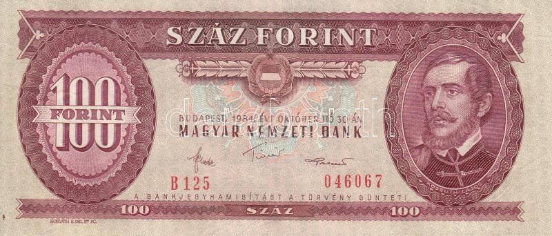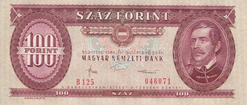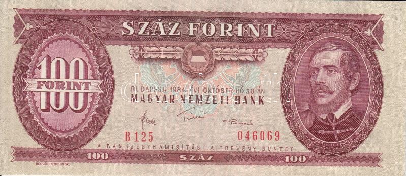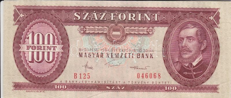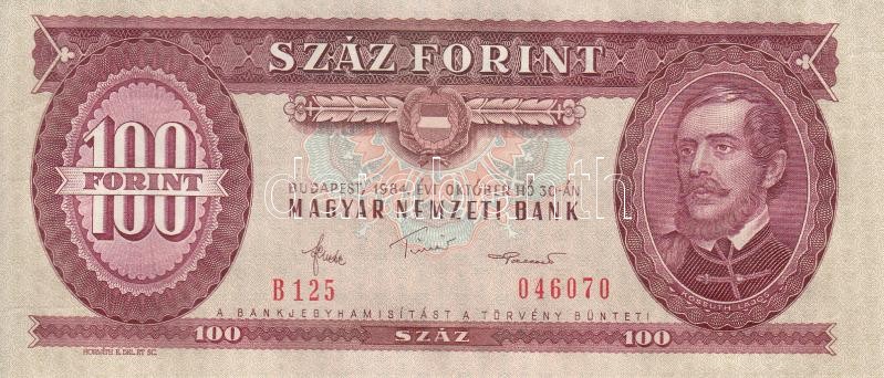 Beschreibung: 1984. 100Ft (7x) egymás utáni sorszámmal, nyomdai papírránccal T:I