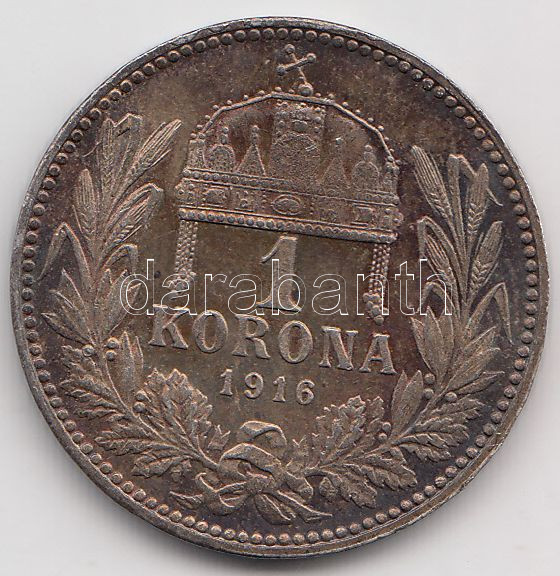 1916KB 1K Ag "Ferenc József" T:2- https://www.darabanth.com/de/191-Fernauktion/191.0/Numismatik/Ungarische-Munzen~200010/1916KB-1K-Ag-Ferenc-Jozsef-T2-~II720112