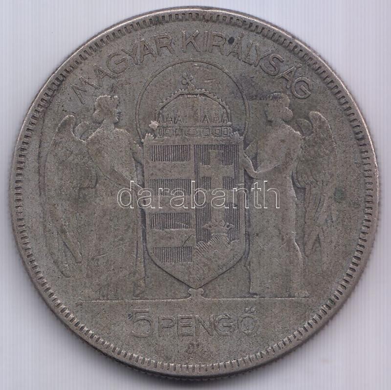1930. 5P Ag "Horthy-jobbra" T:3 https://www.darabanth.com/de/191-Fernauktion/191.0/Numismatik/Ungarische-Munzen~200010/1930-5P-Ag-Horthy-jobbra-T3~II724243
