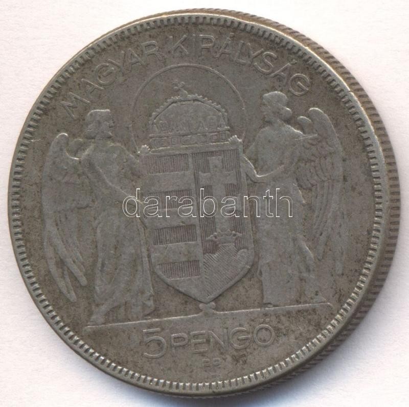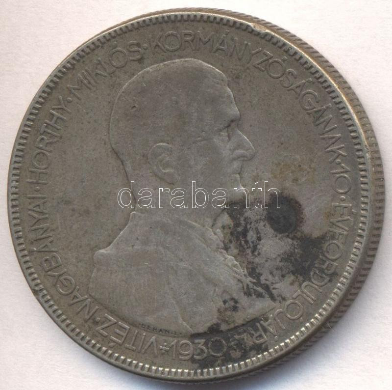 1930. 5P Ag "Horthy-jobbra" T:3 https://www.darabanth.com/de/191-Fernauktion/191.0/Numismatik/Ungarische-Munzen~200010/1930-5P-Ag-Horthy-jobbra-T3~II724245
