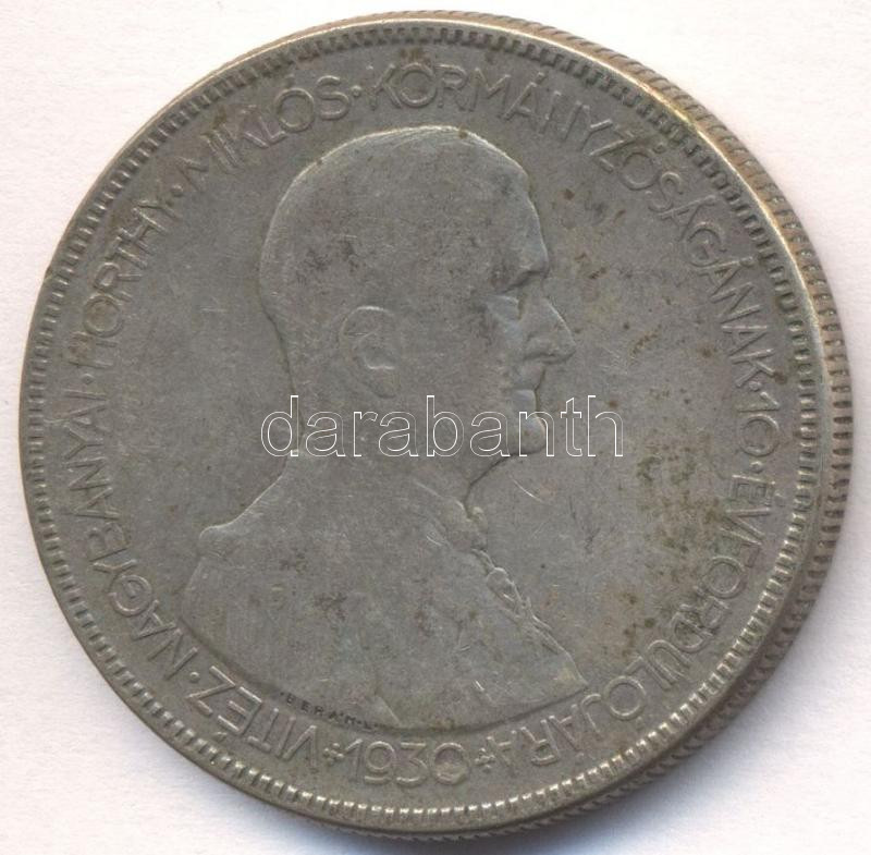 1930. 5P Ag "Horthy-jobbra" T:3 https://www.darabanth.com/de/191-Fernauktion/191.0/Numismatik/Ungarische-Munzen~200010/1930-5P-Ag-Horthy-jobbra-T3~II724248