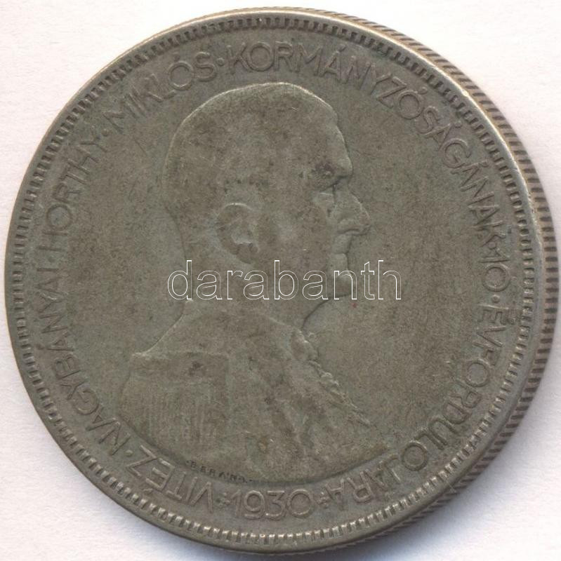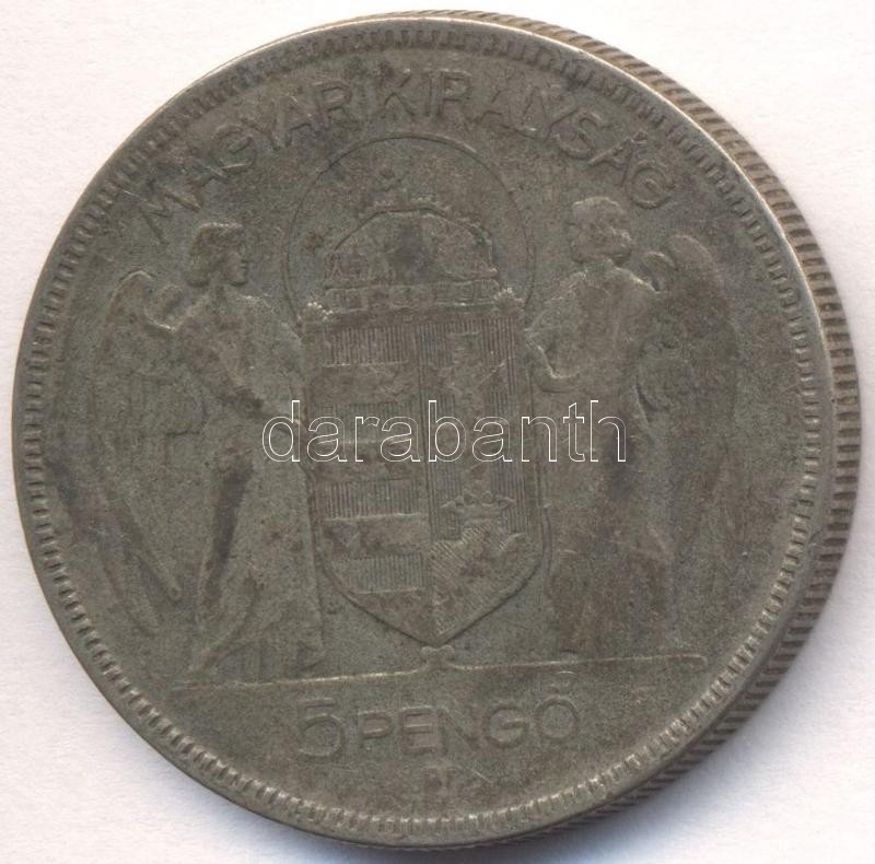 1930. 5P Ag "Horthy-jobbra" T:3 https://www.darabanth.com/de/191-Fernauktion/191.0/Numismatik/Ungarische-Munzen~200010/1930-5P-Ag-Horthy-jobbra-T3~II724252