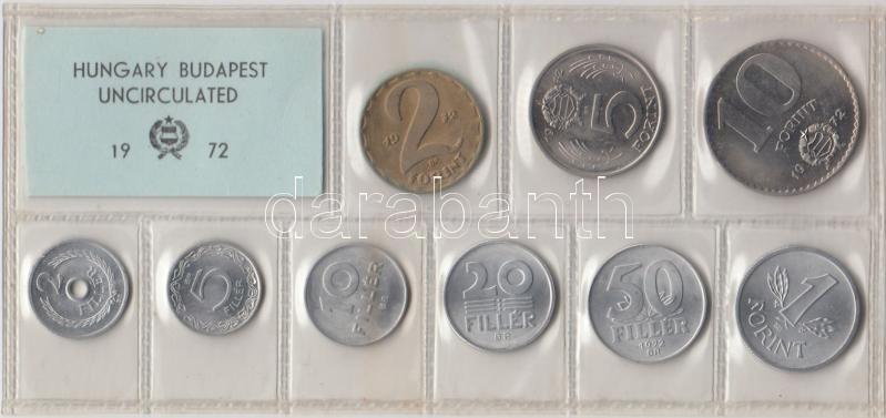 1972. 2f-10Ft 9db klf érmés forgalmi sor fóliatokban T:1 https://www.darabanth.com/de/191-Fernauktion/191.0/Numismatik/Ungarische-Munzen~200010/1972-2f-10Ft-9db-klf-ermes-forgalmi-sor-foliatokban-T1~II721271