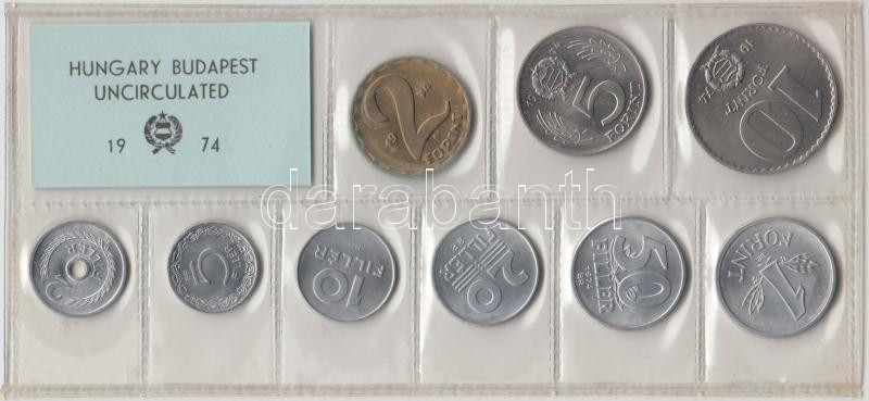 1974. 2f-10Ft 9db klf érmés forgalmi sor fóliatokban T:1 https://www.darabanth.com/de/191-Fernauktion/191.0/Numismatik/Ungarische-Munzen~200010/1974-2f-10Ft-9db-klf-ermes-forgalmi-sor-foliatokban-T1~II721279