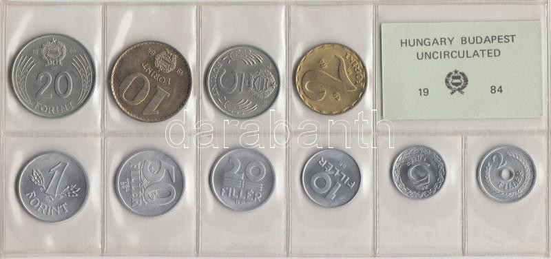 1984. 2f-20Ft 10db klf érmés forgalmi sor fóliatokban T:1 https://www.darabanth.com/de/191-Fernauktion/191.0/Numismatik/Ungarische-Munzen~200010/1984-2f-20Ft-10db-klf-ermes-forgalmi-sor-foliatokban-T1~II721316