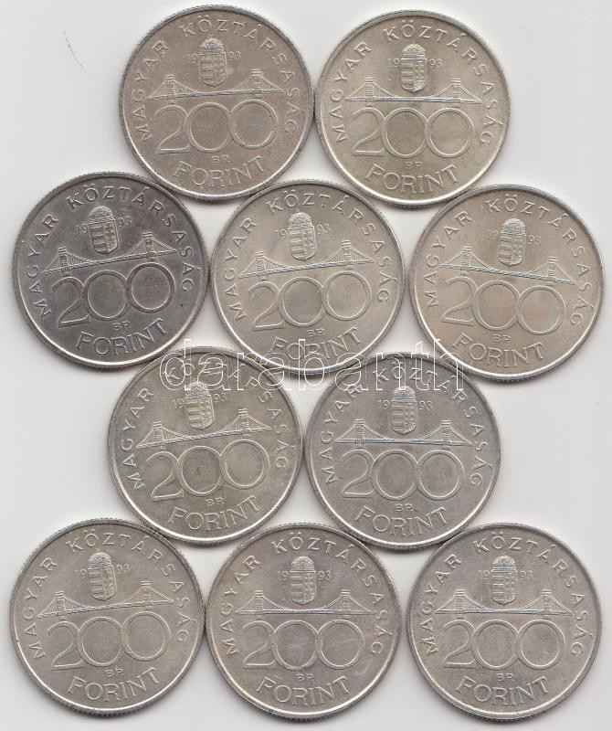 1993. 200Ft Ag "MNB" (10x) T:2 https://www.darabanth.com/de/191-Fernauktion/191.0/Numismatik/Ungarische-Munzen~200010/1993-200Ft-Ag-MNB-10x-T2~II721420