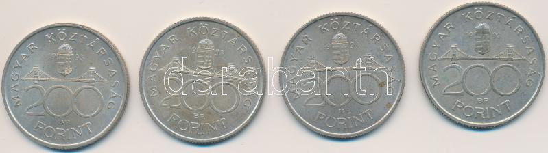 1993. 200Ft Ag "MNB" (4x) T:2 https://www.darabanth.com/de/191-Fernauktion/191.0/Numismatik/Ungarische-Munzen~200010/1993-200Ft-Ag-MNB-4x-T2~II718153
