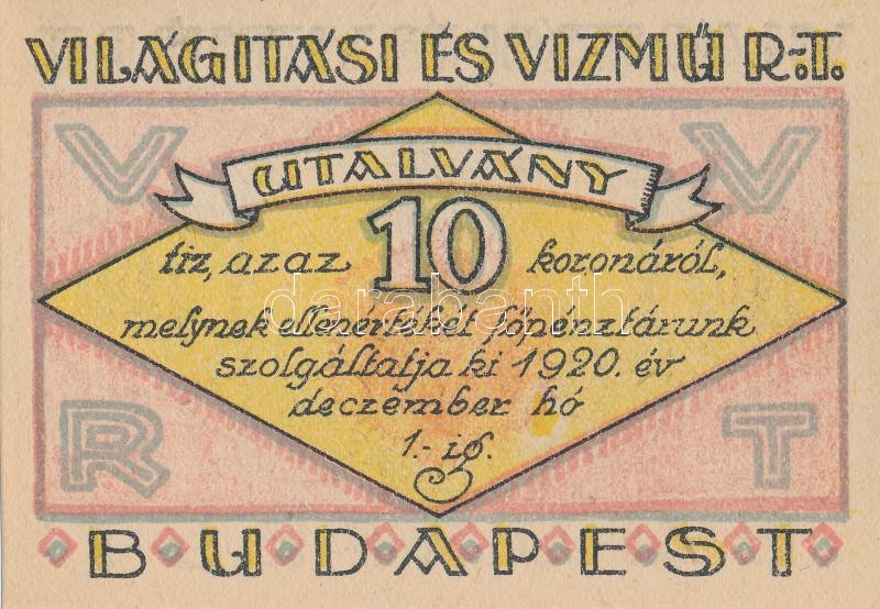 Budapest 1920. "Világítási és Vízmű Rt." értékjegy 20f, 50f, 1K, 2K, 5... https://www.darabanth.com/de/191-Fernauktion/191.0/Numismatik/Ungarische-und-Auslandische-Notgelden~200008/Budapest-1920-Vilagitasi-es-Vizmu-Rt-ertekjegy-20f-50f-1K-2K-5K-10K-6db-boritek~II718235