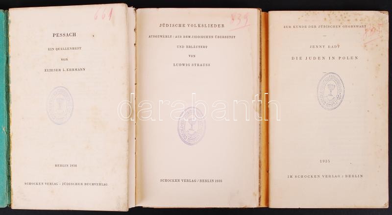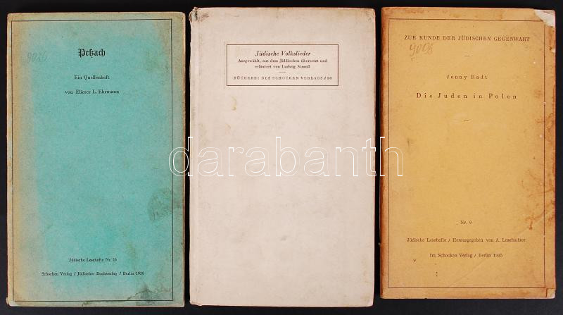 1935-1938 3 db német nyelvű judaika könyv, foltosak https://www.darabanth.com/de/192-Fernauktion/192.0/Andere-Sammelgebiete/Bucher-Judaica~2000035/1935-1938-3-db-nemet-nyelvu-judaika-konyv-foltosak~II725078