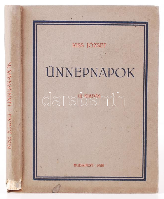 Kiss József, Ünnepnapok. Versek a zsidó ünnepekről. Bp. 1922. Uj kiadá... https://www.darabanth.com/de/192-Fernauktion/192.0/Andere-Sammelgebiete/Bucher-Judaica~2000035/Kiss-Jozsef-Unnepnapok-Versek-a-zsido-unnepekrol-Bp-1922-Uj-kiadas-125p-Kiadoi-kartonk~II715486