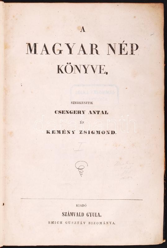 A Magyar Nép Könyve. Teljes sorozat! Szerkesztik Csengery Antal és Kemény Zsigmond. I-II. kötet + Új folyam.