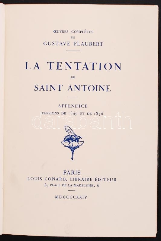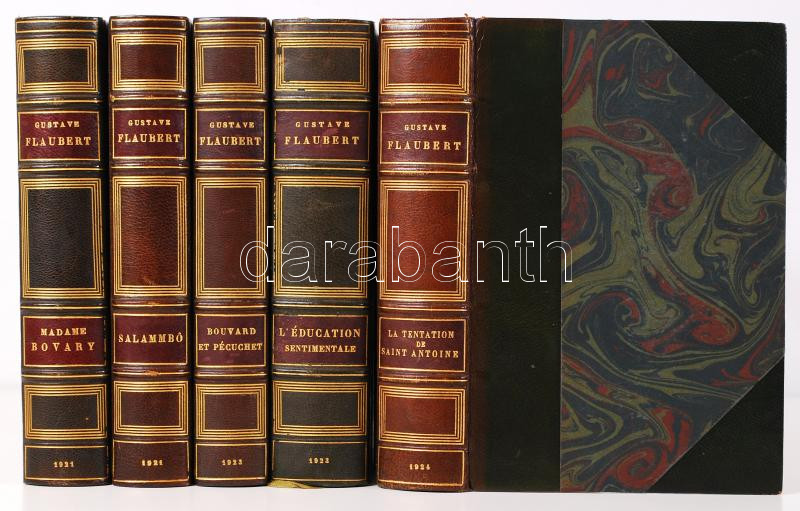 Flaubert, Gustave: Madame Bovary; Salammbo; Bouvard et Pécuchet; L'éducation senimentale; La Tentation de Saint Antoine (Oeuvres Completes de - -). Paris, 1921-1924, Louis Conard. Kiadói, egységes, aranyozott gerincű, félbőr sorozatkötésben, felül aranyozott élmetszéssel, szép állapotban /