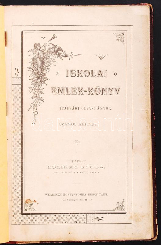 Iskolai emlék-könyv. Budapest é.n. Dolinay Gyula Könyvkiadó Vállalata.... https://www.darabanth.com/de/192-Fernauktion/192.0/Andere-Sammelgebiete/Bucher-Sonstige-Raritaten~2000038/Iskolai-emlek-konyv-Budapest-en-Dolinay-Gyula-Konyvkiado-Vallalata-Cca-1880-sok-keppel-~II728424
