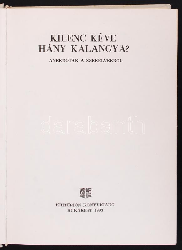 Kilenc kéve hány kalanyga? - anekdoták a székelyekről. Bukarest 1983. ... https://www.darabanth.com/de/192-Fernauktion/192.0/Andere-Sammelgebiete/Bucher-Sonstige-Raritaten~2000038/Kilenc-keve-hany-kalanyga--anekdotak-a-szekelyekrol-Bukarest-1983-Kriterion~II731725